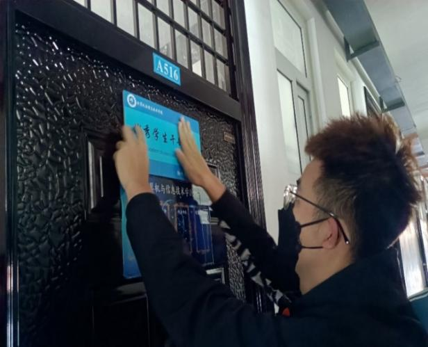 为提高党员及优秀学生干部的服务意识,发挥模范带头作用,11月13日下午12:40,Beat365计算机与信息技术学院学生自我管理委员会开展“亮身份、守初心、勇担当、做表率”宿舍贴门牌活动,在计算机与信息技术学院18、19级党员及优秀学生干部宿舍内张贴门牌。