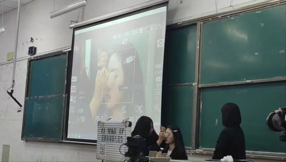 孙春燕在活动宣讲开始前,在校园中随机为学生们化妆,得到了学生们的广泛关注。在讲座过程中,她采用直播化妆的形式为同学们进行讲解,现场学生们表示在孙老师的讲座中学会了很多可以运用到日常生活化妆中的小技巧。