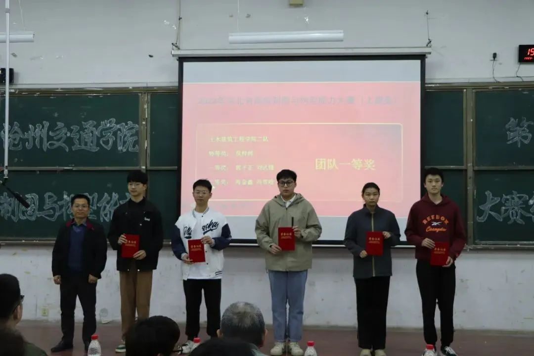 时国松为河北省高校制图与能力构型大赛一队与河北省高校制图与能力构型大赛二队颁奖。