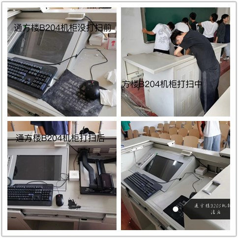 本次活动重点清理学校知行楼、思源楼、通方楼和实验楼,在各任课教师的带领下,学生按班级分配负责的教室,完成了教室黑板擦净、教室胶带清理、多媒体机柜内部清理、课桌内杂物清理、座椅板凳清洁、地面清扫等工作。