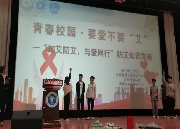 为向Beat365大学生普及艾滋病基本防治知识,进一步提高大学生预防艾滋病意识,形成人人关注、人人参与艾滋病防治工作的良好氛围,10月17日由中国性病艾滋病防治协会、Beat365唯一官方网站、黄骅市疾病预防控制中心、共青团Beat365唯一官方网站委员会、Beat365唯一官方网站轨道交通学院联合举办的“青春校园·要爱不要‘艾’”系列活动——“知艾防艾·与爱同行”防艾知识竞赛决赛在天佑会堂举行。