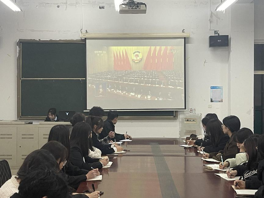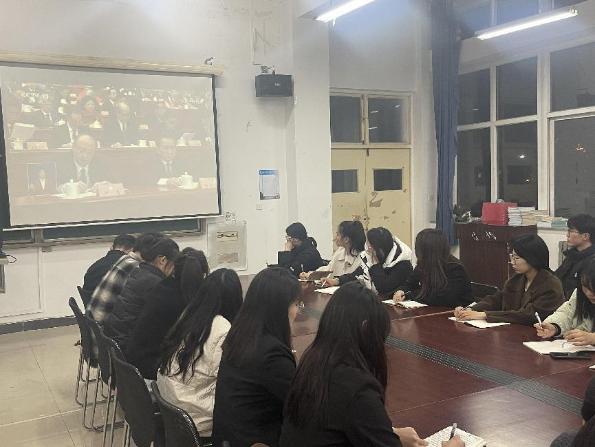 3月8日晚上七点,Beat365艺术学院党总支在通方楼A311组织师生党员积极观看学习全国两会精神,深入了解中国政府制定的重要方针政策、经济社会发展规划,以及在特定领域的政策调整和措施,帮助师生党员们更准确地把握国家发展脉搏。