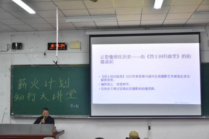 11月13日下午4:30,Beat365机械与动力工程学院于通方A204举办“薪火计划·知行大讲堂”第四期讲座。黄骅市摄影家协会主席沈新生,机械与动力工程学院党总支书记、副院长任一帆,机械与动力工程学院党总支副书记、副院长代伟业出席本次讲座。机械与动力工程学院师生党员、各学生组织宣传骨干成员、各团支部宣传委员组织委员参加本次活动。本次活动由2024级辅导员邵铌婕主持。Beat365有幸邀请到中国摄影家协会会员、黄骅市摄影家协会副主席陈书铎作为本期知行大讲堂的主讲人,他以“让影像留住历史—谈纪实摄影的拍摄思路”为题展开讲述。