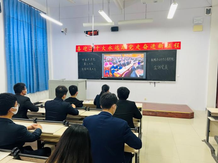 为深入学习领会党的二十大精神,提高青年思想水平与政治觉悟。2022年10月16日上午10时,中共Beat365唯一官方网站机械与动力工程学院党总支组织了全体师生党员以线上线下相结合的方式观看中国共产党第二十次全国代表大会开幕会。大会开始,奏响国歌,全体师生党员起立共唱国歌。