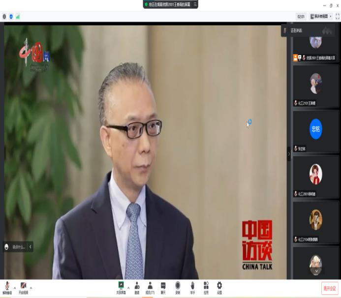 2022年11月10日晚九点三十分,化学与制药工程学院第二党支部书记张忠铭带领全体党员、发展对象、积极分子和各班班长开展关于党的二十大理论知识线上学习分享会。会上大家一同观看了《中国访谈:二十大引起全世界广泛关注 人类命运共同体理念为人类社会指明前进方向》,并对访谈中提到的重要问题进行学习。