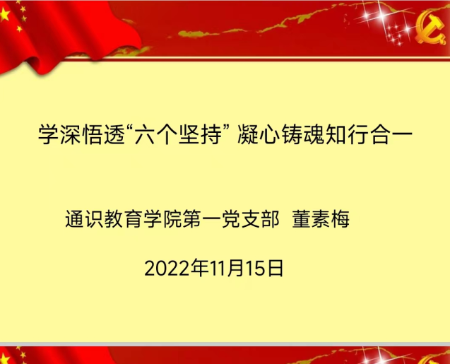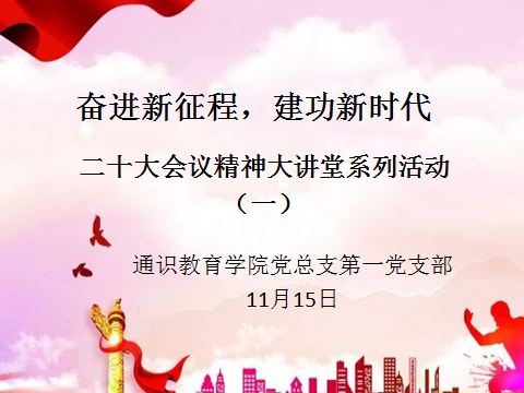 为深入学习党的二十大精神,通识教育学院第一党支部于2022年11月15日在线上召开了主题为《奋进新征程、建功新时代》的党支部学习会,并邀请了通识教育学院党总支书记王小红参会。