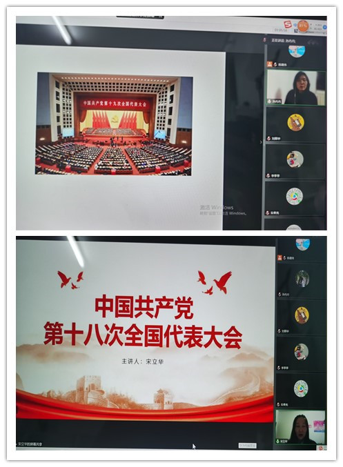 党员教师图文并茂地讲解了党代会历史,重点回顾了党的七大、十五大、十六大、十八大和十九大,大会分别将毛泽东思想、邓小平理论、“三个代表”重要思想、科学发展观和习近平新时代中国特色社会主义思想,确立为全党必须长期坚持的指导思想。