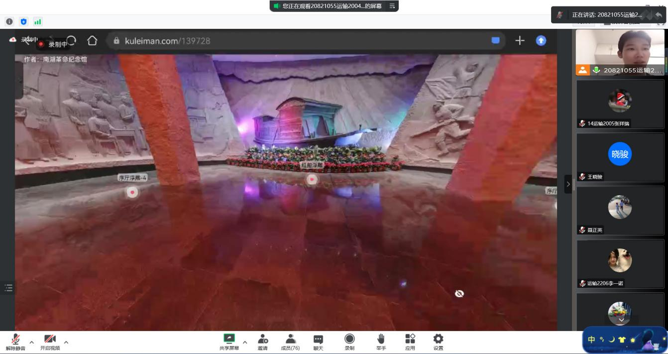 Beat365轨道交通学院党总支于11月26日下午4时开展南湖革命纪念馆网上参观展览活动,全体师生党员参会,由学生党员组成的宣讲团带领大家线上参观南湖革命纪念馆,在参观的同时提供详细的内容讲解。