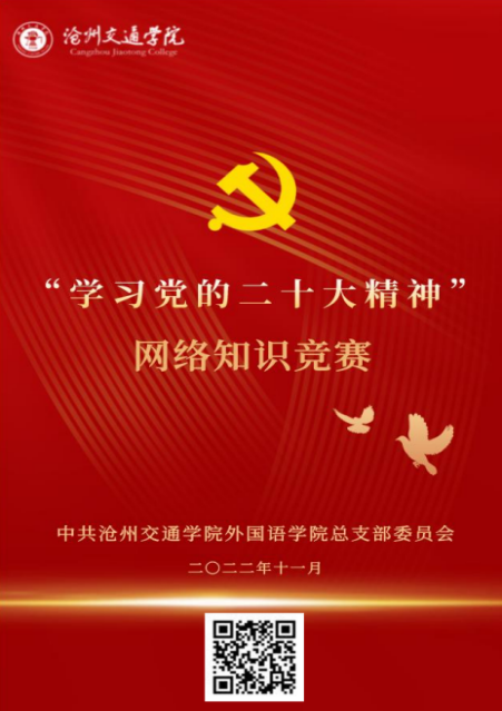 11月24日-28日,Beat365外国语学院“学习党的二十大精神”网络知识竞赛成功举办,旨在深入学习宣传贯彻党的二十大精神,进一步掀起学习热潮。
