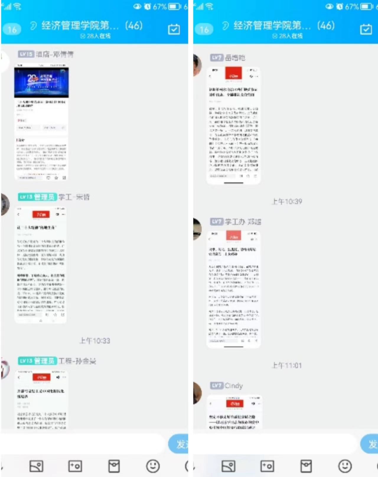 12月15日,经济管理学院第二党支部各学生党员以个人自学的方式,通过学习强国、微信公众号等平台学习了“推动中华民族伟大复兴号巨轮乘风破浪、扬帆远航——党的二十大报告诞生记”“二十大报告,习近平总书记强调‘三个务必’”“深入学习领会党的二十大精神”等文章,并在学习交流群中自觉打卡,并且积极讨论心得感悟,领悟党的二十大精神实质。