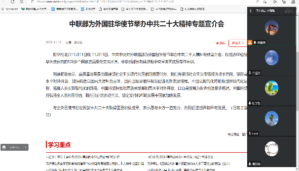 2022年12月15日,经济管理学院第一党支部以腾讯会议的形式组织学习“二十大报告解读|科教兴国 人才强国”,教育、科技、人才是全面建设社会主义现代化国家的基础性、战略性支撑,通过进一步学习、理解党的二十大报告的内容,深刻理解教育任务之重。构建新发展格局,实现高质量发展,离不开高水平科技自立自强,离不开国家战略人才力量的有力支撑,办好人民满意的教育,要以教育优先发展为战略,加快建设高质量教育体系。作为高校教师,要深刻理解新时代新征程中教师的使命任务,提升教学能力,坚守为党育人、为国育才的初心使命,为加快建设教育强国贡献力量。