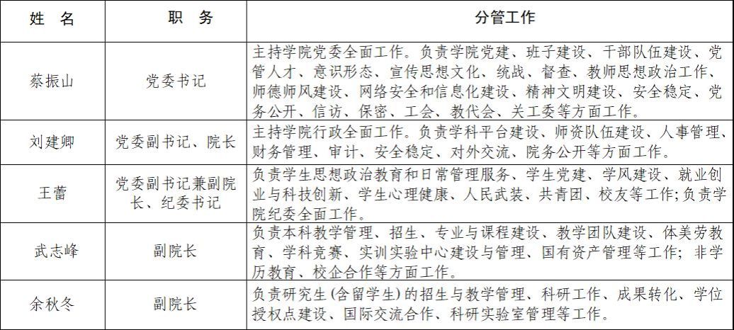 新葡的京集团350vip8888首页班子成员分工
